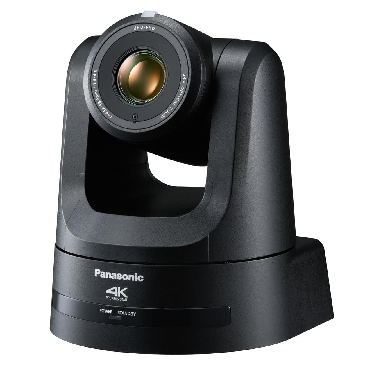 La Panasonic AW-UE100 (noire) est une caméra tourelle PTZ qui assure une diffusion live de vidéo 4K / UHD (3840 × 2160px) de haute qualité.
