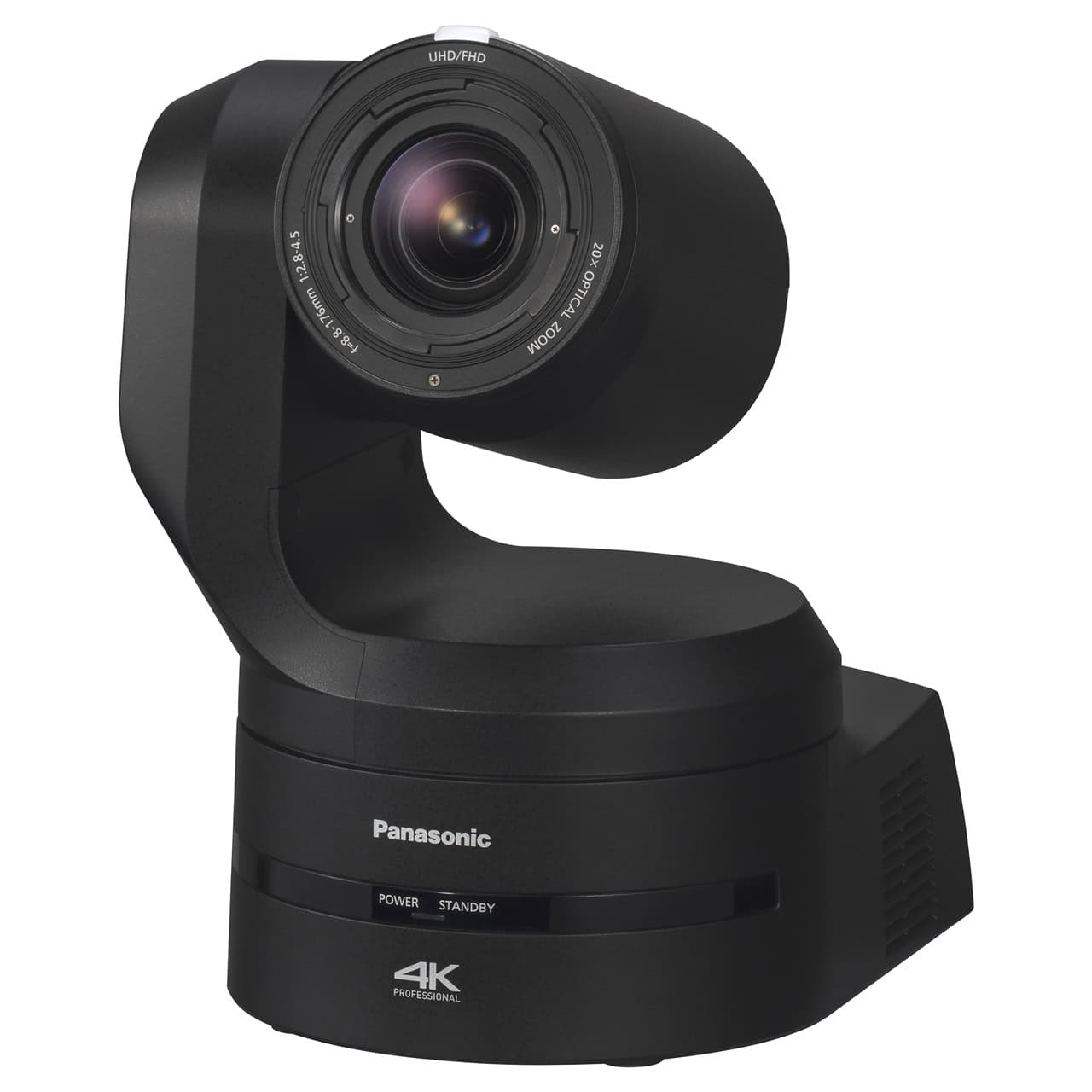 La Panasonic AW-UE160 (noire) est une caméra tourelle PTZ qui assure une diffusion live de vidéo 4K / UHD (3840 × 2160px) de haute qualité.